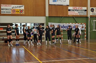 Deze arbeid is een vereiste volgens voorzitter Bobbes de Ruyter. “De kinderen kunnen door het volgen van deze clinic, waarin ze kijken naar en trainen met deze speelsters van TVC, zien waar dat vele trainen toe kan leiden.” Na de leerzame clinic speelde de hoofdmacht van Dinto een wedstrijd tegen Amstelveen. Een eerstedivisionist tegen de mogelijke kampioen van de A-league, vooraf bezien een ongelijke strijd, volgens coach Rick Breeuwer. “We moesten bovendien spelen zonder Marije Bloem en Floortje Kok als afmakers.” Onder leiding van scheidsrechter Ruud Hof was er evenwel leuk volleybal te zien. Er was besloten om twee sets tot de 15 te spelen. Met tweemaal 8-15 voor Amstelveen was binnen een half uur het duel beslist. Wel wat kort vond Kaira van der Pal. “Ik had heel erg naar deze wedstrijd uitgekeken. Het was geweldig om te scoren tegen zo’n superploeg. Maar ik had graag nog een paar sets gespeeld.” Coach Rick Breeuwer vond dat zijn ploeg goed gepresteerd had. “Er waren enkele prachtige rally’s. Je bent natuurlijk kansloos, maar voor ons spel hoefden we ons zeker niet te schamen.”