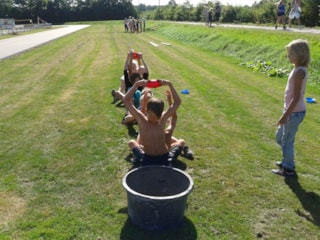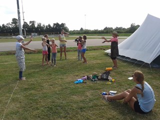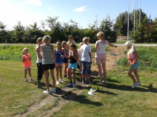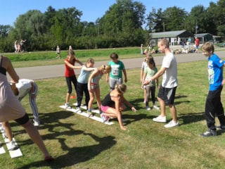 Het weer werkte mee en onder een lekker zonnetje werden de tenten opgebouwd. De begeleiding, onder supervisie van Ulla Berkhout had weer een gevarieerd programma in elkaar gedraaid met een zeskamp en op zaterdagavond o.a. een bonte avond met als afsluiting een disco. Senna Snijders heeft een eervolle vermelding verdient door het rode draadspel ”piewen” te winnen, zij ontfutselde wel 15 naamkaartjes van de andere deelnemers. Gefeleciteerd!!