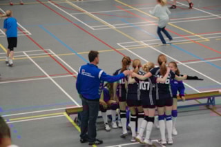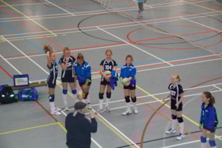 Na de 3 poule wedstrijden, die eenvoudig werden gewonnen, moesten we nog spelen tegen Simokos en Taurus de nrs 1 van de andere poules. De eerste set gaf Simokos goed partij, er werd mooi volleybal gespeeld met fraaie acties. Na winst van deze set met 25-22 , was de tweede set een formaliteit 25-12. Uitblinkster deze wedstrijd was Janthe die een aantal onthoudbare smashes liet zien. Tegen Taurus speelden de meiden wederom een gedegen wedstrijd. Na een gelijk opgaande eerste set, kwam er bij 18-18 een eindspurt 25-18 winst. We waren door naar de Final Four, de tweede set werd netjes uitgespeeld 25-20.