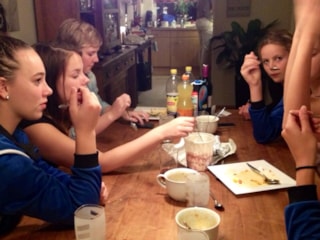 Afgelopen zaterdag gingen we richting Tuitjenhorn, de Boemel D1 was onze volgende tegenstander. Doordat Atinka (een maand naar Sri Lanka) en Juliet, waar het gelukkig heel goed mee gaat en ons al komt aanmoedigen, maar voorlopig nog niet kan spelen en Renske die met Dames 1 moest spelen niet aanwezig waren, hadden we geen midden aanvallers. Lynn (ook mee gedaan tegen Alvoco) en Daphne konden gelukkig met ons mee doen. Ook nu sloeg het noodlot toe Mariska kreeg op de training een enkel blessure, wat jammer!, we wensen haar heel veel sterkte toe namens dames 2 en Astrid was ziek geworden, flink ziek het ging echt niet lukken, ook Astrid wensen we sterkte en tot snel!Martina die al lekker mee staat te trainen ging met ons mee en daar waren we heel blij mee. Routine binnen zo een jonge ploeg is prettig en dat bleek. We hadden het moeilijk en het liep allemaal net even anders dan de vorige wedstrijden maar we knokten en bleven doorgaan we zaten er steeds dicht bij, maar zoals dan zo vaak valt het balletje net aan de verkeerde kant DIE VAN ONS ( 26-24, 21-25, 23-25) 0-3 achter, om toch een goed gevoel te hebben van de wedstrijd lieten we de koppen niet hangen en we zaten er al door dichtbij. Kom op meiden nu volle bak blijven gaan en het lukte ....20-25 , toch nog met 1 punt de kantine in, heerlijk na zitten maar helaas de patat was op. Iedereen lustte nog wel wat dus Oscar (vader van Daphne) ging op weg naar Appie en maakte heerlijk macaroni Martina was snel langs Moos gefietst en had heerlijk ijs mee. Erik en Ingrid namen het avond eten kip/pasta salade, wijn en een foccacia mee naar Oscar. Het was een gezellig afsluiting van een mooie volleybaldag.