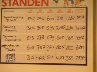 Stonden wij na 5 weken nog 350 muntjes achter op gymvereniging DWV, de laatste dag heeft er een inhaalrace plaatsgevonden. Op deze zaterdag 18 oktober j.l. was het Dinto’s beurt om de hele dag bij Supermarkt Deen te staan en zoveel mogelijk munten te verzamelen.