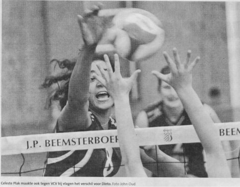 Spelverdeelster Ysabel Maréchal was tevreden over het vertoonde spel van Dinto. “Vorige week hadden we een rotwedstrijd, waarin niks liep. Nu gingen we er vanaf de eerste set gemakkelijk overheen. In de spannende fases bleken we steeds wat extra’s over te hebben. Die vijf punten hadden we keihard nodig voor de titel. Toch wordt het nog een hele klus, want we zijn kwetsbaar. Celeste is er de laatste twee wedstrijden niet bij en die kan toch het verschil maken.” Met goed verdedigend werk van Inge van den Outenaar en met Celeste Plak en Floortje Kok als sterke afronders aan het net pakte Dinto in de eerste set direct een 8-3 voorsprong. De gevaarlijke sprongfloateropslag van Lisanne Adams dwong de coach van VCV bij een 13-4 stand tot een time-out. In de slotfase kwamen Misha Nannes en Kaira van der Pal in de opstelling. Dinto maakte korte metten met de onzekere bezoeksters: 25-10. VCV bracht enkele nieuwe speelsters binnen de lijnen, maar zag de thuisploeg door een prima servicereeks van Tamar Steenbergen al snel op een 7-3 voorsprong komen. Er slopen vervolgens wat slordigheden in het spel van Dinto. Vooral de blokkering van de gasten stond beter en VCV kwam langszij:12-13. Een kill-block van Celeste Plak en een slimme tactische bal van Marije Bloem zette Dinto weer op het goede spoor. Er ontstonden enkele lange rally’s, die onder andere door een sluwe doortikbal van Ysabel Maréchal naar de Warmenhuizer selectie gingen. Dinto ontwikkelde bovendien weer meer servicedruk. Een dubbele wissel gaf de bezoeksters niet het gewenste succes en met 25-16 ging de set toch weer eenvoudig naar de formatie van Derk de Saegher. De concentratie verslapte even in het derde deel: 2-7. Een snoeiharde smash van Celeste Plak gaf Dinto weer nieuw elan. Toch had VCV vertouwen geput uit de scores die ontstonden uit het onbevangen serveren en aanvallen. De Warmenhuizer titelpretendent wankelde even, maar kon door subliem spel van Floortje Kok en Lisanne Adams de derde set binnenhalen: 26-24. De vierde set bleef VCV door een goede driemeteraanval lang in het spoor maar na een 22-19 stand was Dinto spekkoper: 25-19.