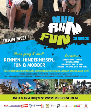 We zouden u willen vragen of u deze Mudrun Fun bij uw vereniging onder de aandacht wilt brengen. Bijgevoegd vind u de flyer en onderstaand de data van de verschillende evenementen. Voor meer informatie over de Mudrun Fun kunt u kijken op www.mudrunfun.nl