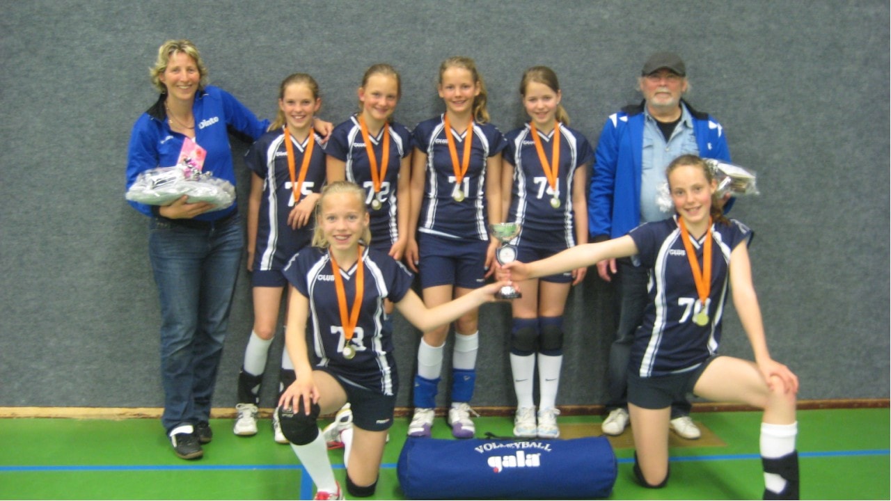 Na het kampioenschap in het rayon mocht Dinto D1 samen met de nr 2 Alvoco 1 naar sporthal Midland. In de poulefase ging het gelijk fantastisch. Eerst wonnen de meiden overtuigend van Nederhorst den Berg met 2x 25-11, daarna van Simokos D1 met 25-20 en 25-16 en daarna was Forza Hoogland het derde slachtoffer van de Warmenhuizer dadendrang:25-14 en 25-16. In de kwartfinale was het Hoornse Nivo met 25-8 en 25-13 een maatje te klein. In de halve finale was de thuispelende Keistad de tegenstander. Met 25-8 en 25-14 was het team van Bob Versteegh en Gerriëtte Schipper de eerste finalist. Later bleek de tegenstander het bekende Alvoco (dat won van Simokos) te zijn. In deze finale gingen alle remmen los bij onze toppers. Met 25-6 en 25-2 (!!!) was de titel een feit.