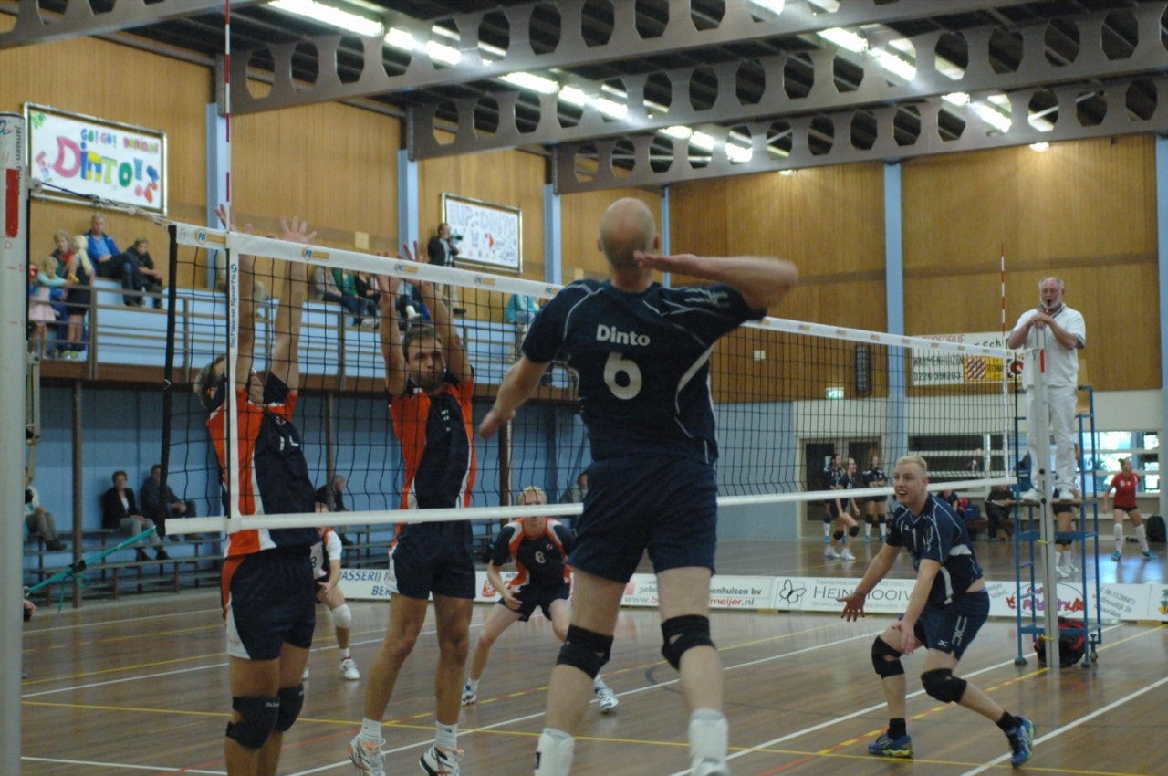 Dinto gooide de handdoek niet in de ring. In de loop van de vierde set maakte Guido Berkhout, de jongere broer van Dion, zijn debuut voor de Warmenhuizer hoofdmacht. Latumaerissa: “Ik zag dat Erik Mulder even rust nodig had. Guido gaf gelijk een paar prachtige set-ups en we bleven in de slotfase door goed aanvalsspel van Joost van den Berg uitstekend op de been. “ Na de 30-28 setwinst was de koek echter op bij Dinto. Forza Hoogland liep gestaag uit naar een 10-15 beslissende setwinst.
