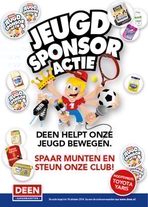 Het is bijna zover! Op zondag 7 september start voor de 11e keer de DEEN Jeugdsponsor Actie. Een actie die speciaal is opgezet om alle (sport)vereniging in Noord-Holland en Flevoland te ondersteunen. Dit jaar staat in alle winkels ook een koker van het Jeugdsportfonds. DEEN heeft voor een samenwerking met deze organisatie gekozen, omdat we het belangrijk vinden dat ieder kind lid kan zijn van een (sport)vereniging. De Jeugdsponsor Actie is opgezet voor alle jeugd in onze regio en met deze samenwerking komt de intentie van de actie nog meer tot haar recht.