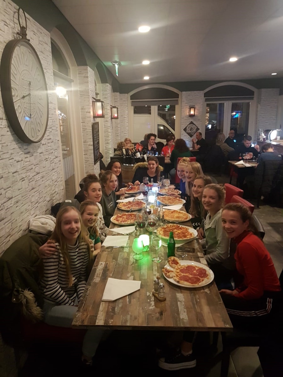 Ondanks dat we als enige team niet door zijn naar de volgende ronde hebben we met elkaar een superleuke, leerzame en gezellige dag gehad. De meiden hebben het goed gedaan! Daarna lekker pizzaatje eten met elkaar!