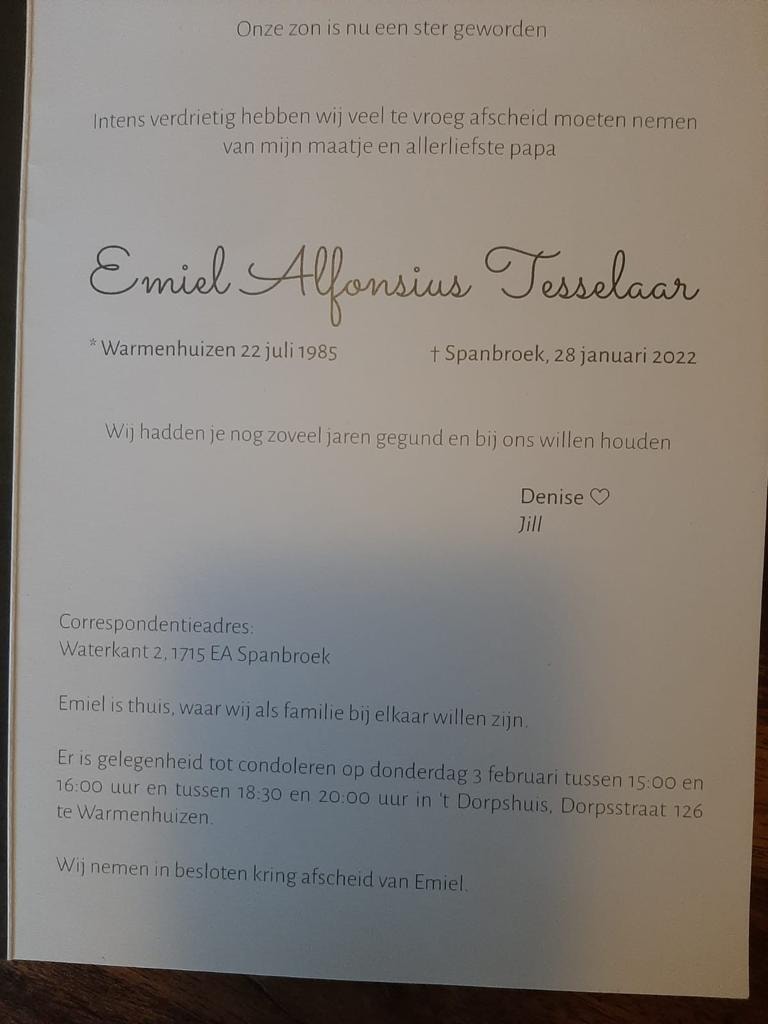 Emiel Tesselaar 22-7-1985 - 28-1-2022