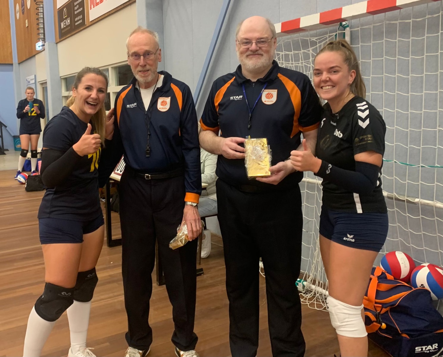 Op bijgaande foto’s worden bij de wedstrijd van dames 1 tegen Havoc de scheidsrechters Richard Weenk en Frans van Tol in het zonnetje gezet. Op de andere foto van eerdere datum onze eigen Dinto scheids John Berkhout.